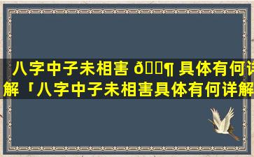 八字中“子未相害 🦅 ”的具体详解和解 🦊 释