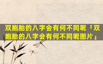 影响 🐝 生 🐟 双胞 🌴 胎的八字特征
