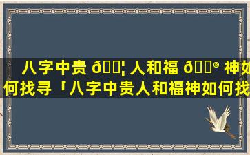 如 🦋 何找寻自己的贵 🕸 人和福神