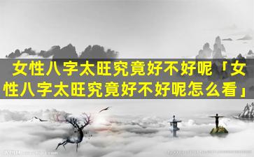因此,对,于,女性八字太旺是否好坏需要 🐈 结合整个命局来具体分析不可一概而论。