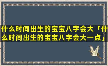 八字是一门中国传统命理学,用干支纪年、月、日、时来推算人的命运。出,生时。间,对八字。有影响但并没有什么时间出生的宝宝八字会大一点的说法八字的吉凶主要取决 🌷 于干支五行生克制化的关系而不是出生时间
