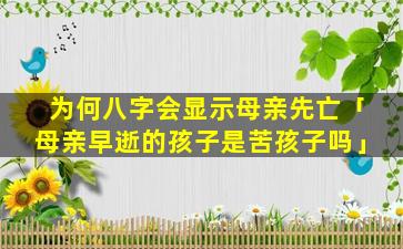 值得注意的是,命,理学仅是一种预测体系并不一定准确。母,亲。早逝的原因可能复杂且多方面不宜 🦟 全盘迷信命理学的说法