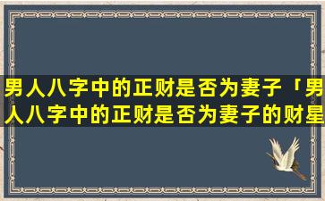 因此,男,人八字 🐠 中的正财是否为妻子的 🌺 偏财需要根据八字命理的具体组合来判断。