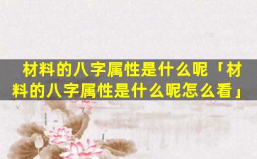 确定材料 🌷 的八字属性没有准确的方法,因为材料不是 🦁 生 🌺 物。可以通过以下方式进行推测: