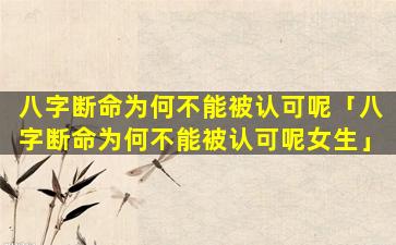 八字断命缺乏科学依据、随、机、性、主观性因人而异可重复性 🌷 差而,且,与 🌸 迷信和宿命论有关因此无法被科学界和主流社会认可。