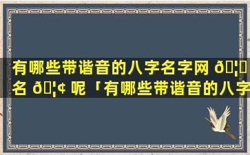 带谐 🐞 音的 🌹 八字名字(男孩)