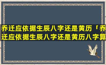 乔迁吉日可以依据生辰八字或黄历八字计 🐬 算,需要根据主人的实际情况和偏好来选择。