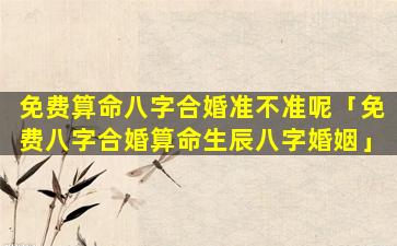 免费算命八字 🐴 合婚的准确性