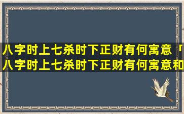 八字 🐺 时上七 🦋 杀时下正财的 🐞 寓意和象征