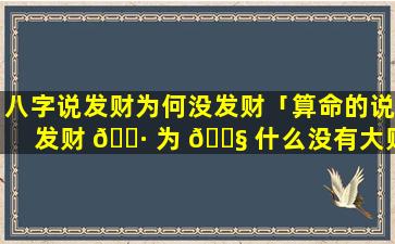八字好却 🌺 发不 🦄 了财的原 🪴 因:
