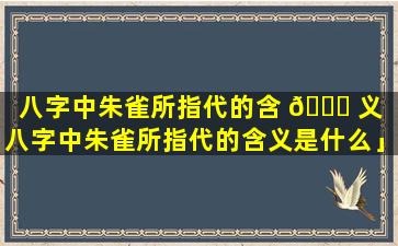 朱 🐺 雀在算命中代表什 🦉 么 🦅 ?