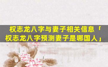 权志龙的八字信息 🌹 未公开,无法根据八字预 🐝 测其妻子的国籍。