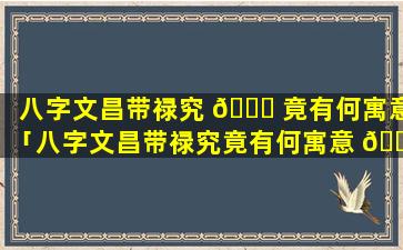 八字文昌 🕷 带 🍀 禄的寓意 🐞