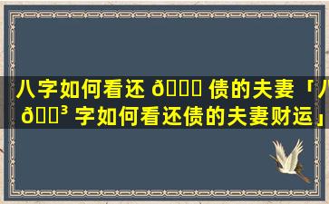 化解方法若八字显示还债的夫妻财运,可通 🦆 过以下方式化解: