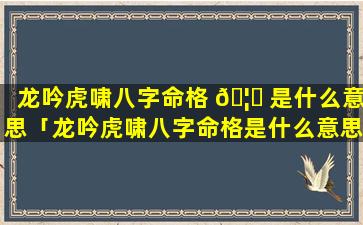 龙 🐟 吟虎 🐕 啸八字命格的 🐋 含义