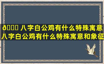 总体而言,八,字白公鸡的寓意没有统一的说法因地区 🐋 文化和个人信仰而异因。此,是,否。具有特殊寓意需 🐦 要根据具体的文化背景和个人理解来判断