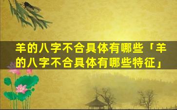 在八字命理中,没有专门针对“羊”的八字不合说法八字不合的。判,断。主要基 🕷 于命主的出生年月日時辰推算出的 🐠 八字五行生克关系与生肖属相无关