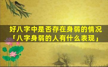 注意:八字身弱并不 🐅 代表一定会有这些表现,需要结合具体 🐘 八字进行综合分析。