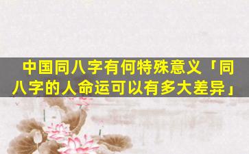 因此,即,使,八字相同由于这些因素 🐵 的不同同八字的人命 🐴 运差异可以 🌻 很大。