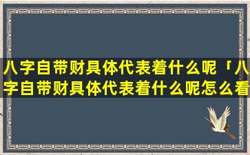 八字 🕊 自带 🌳 财的具体代表 🦅 :