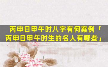 丙申日 🪴 甲午时八 🐝 字案 🐒 例: