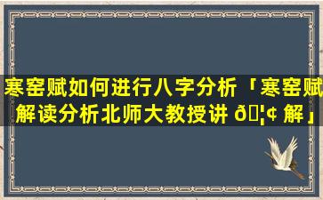 北师 🦁 大教授讲 🌷 解《寒窑赋 🍀 》