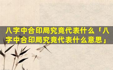 总 🍀 体来说,八,字中合印局是一 🦉 种较为吉利的格局表示命主 🐞 才华出众、官、运亨通贵人相助。