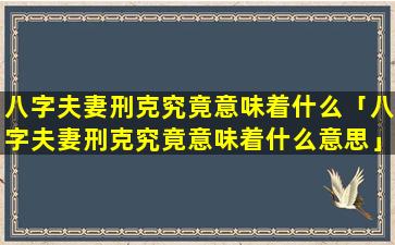 八字 🌳 夫 🌷 妻 🍀 刑克
