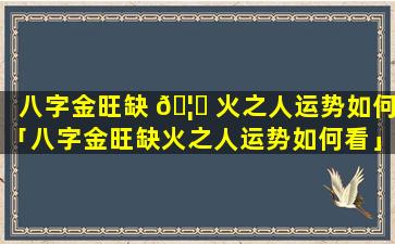 八字金旺 🦍 缺 🌻 火之 ☘ 人的运势解读