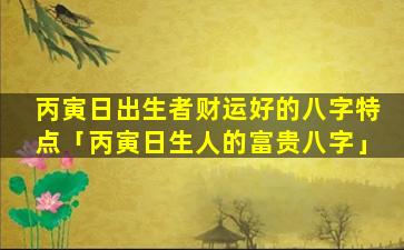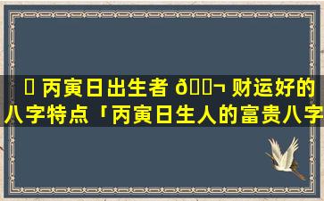 丙寅日出生者财运好的八 🦋 字特 🐼 点 🌵 :