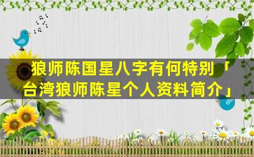 抱歉,我没有关于“台湾狼师陈星个人资 🦄 料简介”的信息。