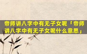 是否有子女“帝师讲八字中有无子 ☘ 女”这句话,说明帝师(精通八字学的人)认,为可以通过分析 🌻 一个人的八字判断此人是否有子女。