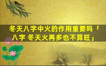 在八字命理中 🌳 ,冬,天的八字中火的作 🐅 用非常重要因 🐞 为它可以: