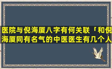 与医院的关系:倪海 🌿 厦的八字中“财星”旺盛,这预 🦟 示着他在物质上会有丰厚的收获。而“财星”又,代。表着医院因此 🌾 他的八字显示出与医院有着密切的缘分