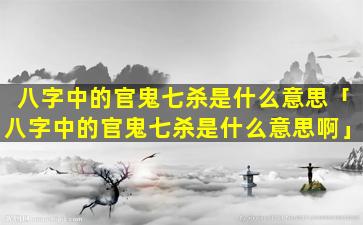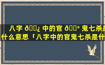 官 🍀 鬼 💐 七杀 🦆 与命主性格