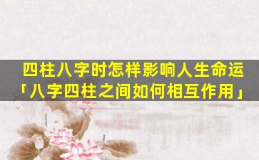 八字 🌿 四柱之间的相互作用 🐋 如何影响命理