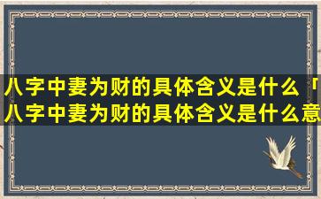 八字命 🦈 理 🌼 中妻 🌿 为财的具体含义
