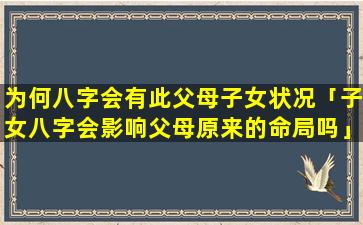 因此,子 🐒 ,女的八字是否好坏不会影响父母的命局父母的。运势是由他们的八字、大,运。和流年共同决定的不受子女八字的影响