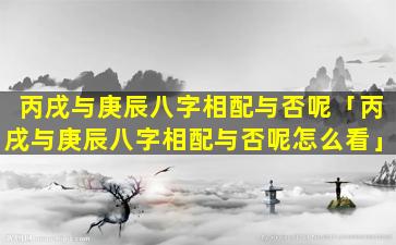 丙戌年与庚 🌻 辰年八字相配分析