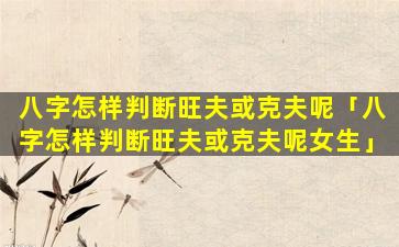 女生 🐴 八字判 🌴 断旺夫或 🕊 克夫的方法: