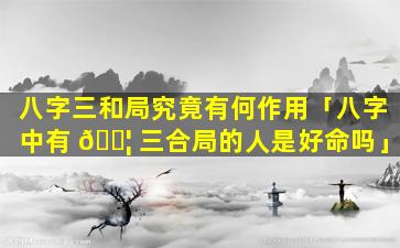 三合局在命理 🌷 学中代表着合作、和、谐 🐘 团结,主吉 🦢 利。如,果,八,字中。出现三合局则表示命主容易得到贵人相助人际关系好事业发展顺利