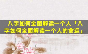八字全 🦍 面 🌲 解读个 🌾 人方法