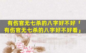 有伤官无七杀的八字 🦊 是否好,需,视具体情况 🌹 而定不能一概而论。