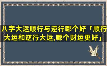八 🐯 字大运顺 🌺 行和逆行各有优 🦋 缺点: