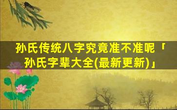 孙氏传统八字传承久 🌾 远,具有悠久的历史和实践经验。
