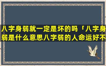 八字身弱不一定代表命运不好,具体吉凶需要结 🐋 合其 🌵 他因素来综合判断。