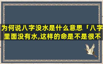 在八字命理学中八 🐅 字,“没 ☘ 水”通,常指一个人的八字命盘中五行缺水即命盘中没有 🌼 水属性的日主、月、令时柱或大运。