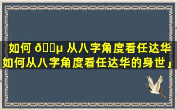 根据任达华的八字来看,他,出 🐎 身富贵但一生奔波变动。凭,借,出。色的才华和智慧他能够在事业上取得成功财运也比较亨通