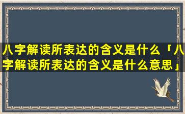 八 🍁 字解读所表达 🐠 的 🐅 含义