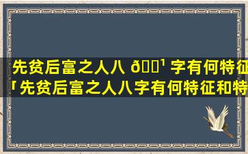 先贫 ☘ 后富八字特 🕸 征